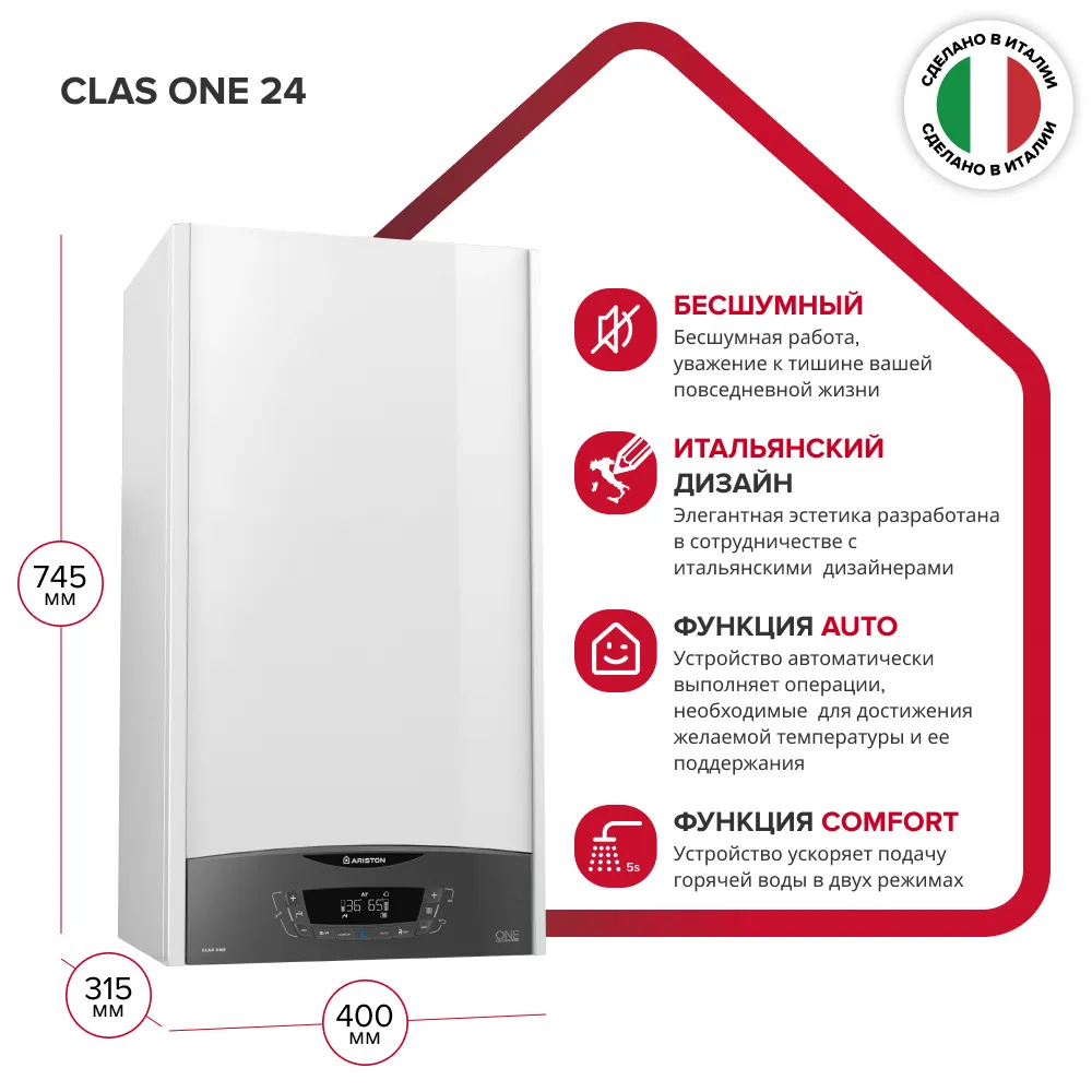 Вид: газовый , Вид топлива: природный газ, сжиженный газ , Мощность котла: 24 кВт, Площадь обогрева: 240 м2, Тип: двухконтурный , Расположение: настенный , Камера сгорания: закрытая