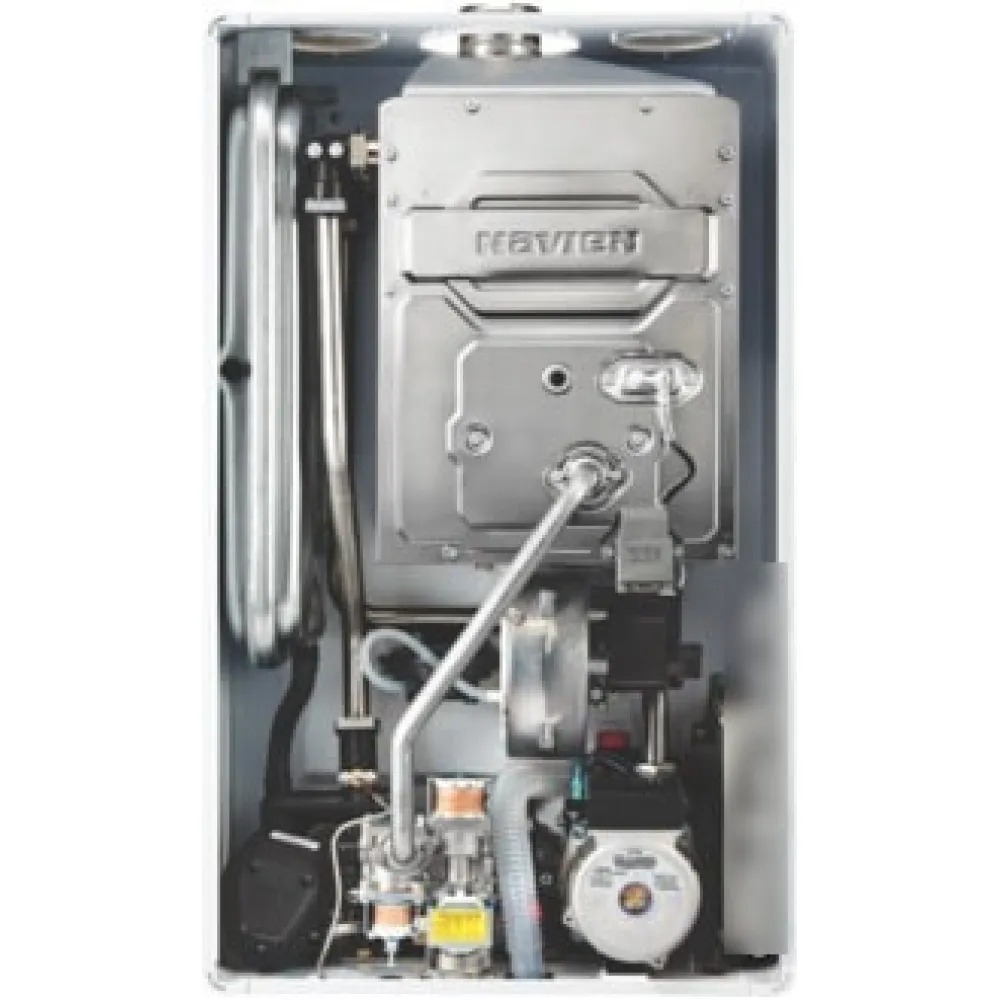 | Информация | В модели Deluxe S были сохранены преимущества первого поколения – это вентилятор с изменяемой частотой вращения, дифференциальный датчик давления воздуха, защита контроллера от перепадов напряжения SMPS-чипом и также как и с первым поколением в комплекте с котлом поставляется выносной пульт управления. Значительные изменения коснулись гидравлических компонентов, намного упрощен процесс снятия таких узлов как: вторичный теплообменник, трехходовой клапан а также узлы гидрогруппы. Кроме того, был изменен принцип контроля наличия теплоносителя в отопительном контуре: компания отказалась от датчика протока в контуре отопления и заменила его датчиком давления теплоносителя. Были изменены присоединительные размеры камеры сгорания к дымоходу, и сейчас для подключения коаксиального комплекта диаметром 60/100 не требуется переходник с 75-го диаметра, а это значит что к нашим котлам теперь подходит универсальный дымоход и нет необходимости приобретать специальный коаксиал Navien |