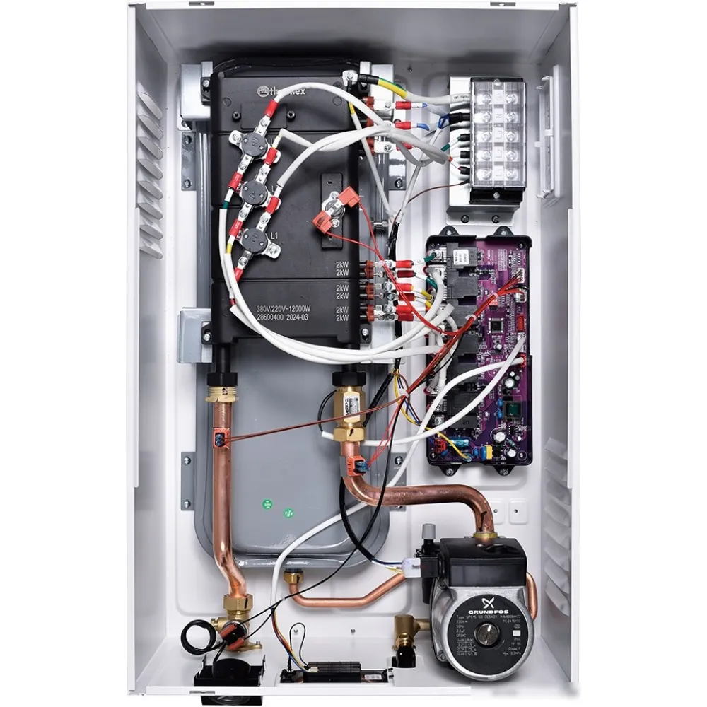 | Информация | - Электрокотел Thermex Boss 12 Wi-Fi White предназначен для отопления помещений до 120 кв. м. и для горячего водоснабжения. - Встроенный циркуляционный насос и расширительный бак объемом 6 литров уже установлены в котле, что устраняет необходимость их дополнительной покупки. - Можно использовать в системах "теплый пол" при установке трехходового смесительного клапана или гидрострелки. - Для работы платы управления котла требуется подключение к электрической сети 220/380 В. |