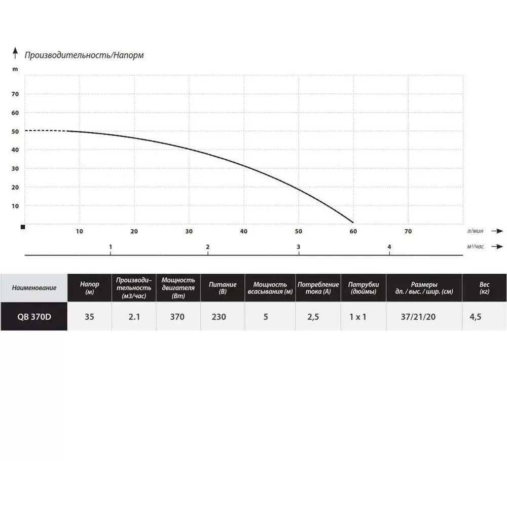 самовсасывающий, 2.1 м3/ч, напор 35 м