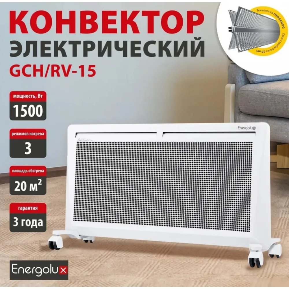 конвектор, монолитный (x-образный), 1500 Вт, термостат, настенный монтаж, управление электронное, площадь обогрева 20 м2