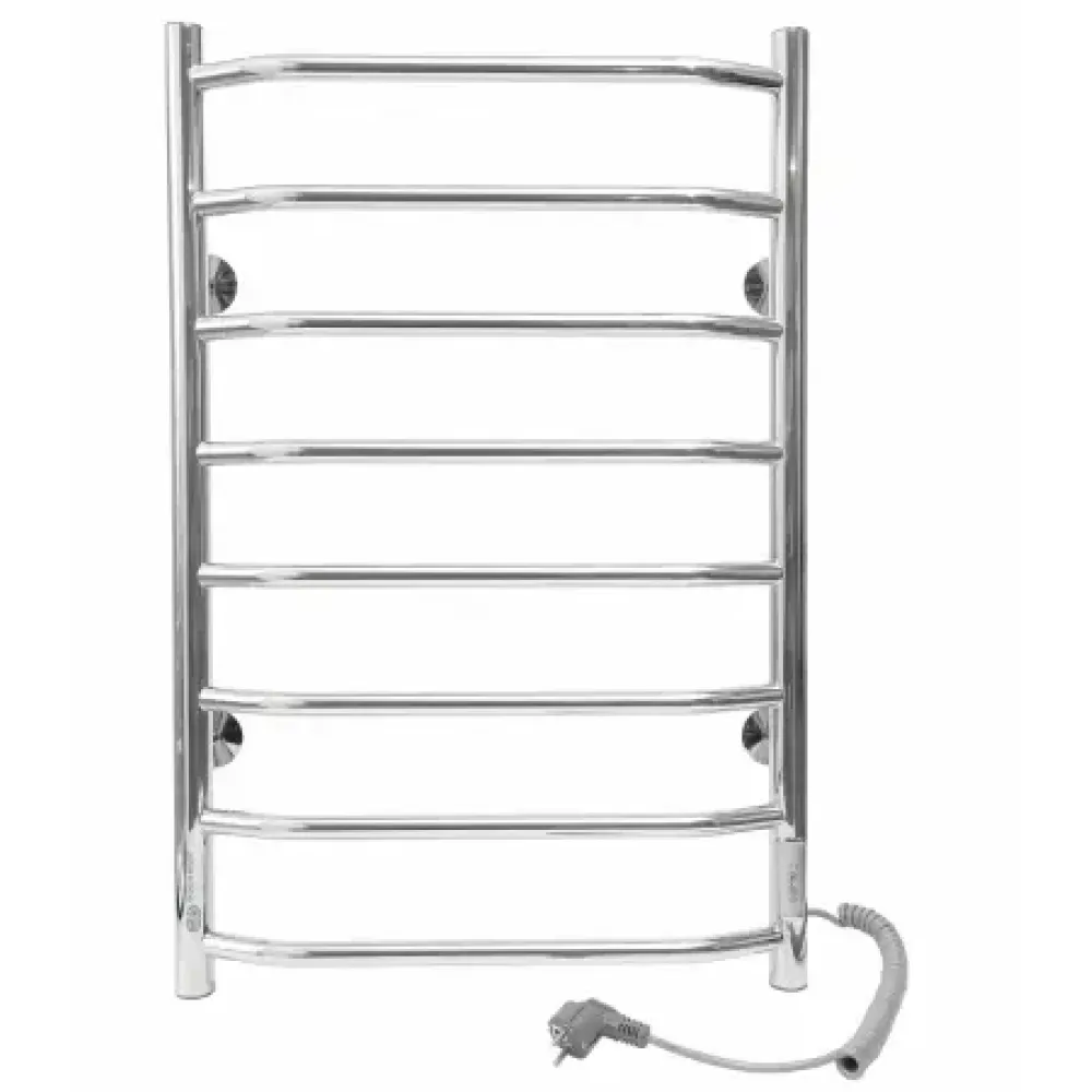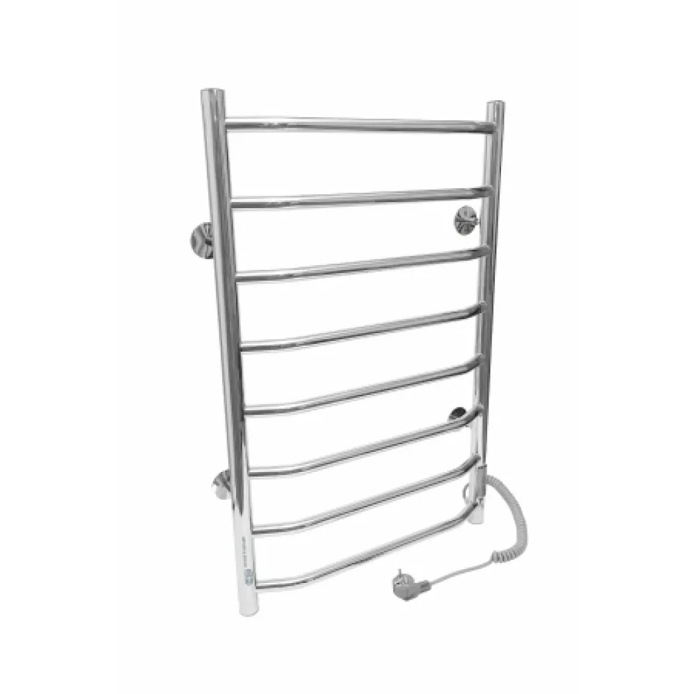 Тип: электрический , Форма: лесенка , Материал: нержавеющая сталь , Подключение: боковое , Высота: 80 см, Ширина: 50 см, Цвет: хром , Количество ребер: 8 шт.