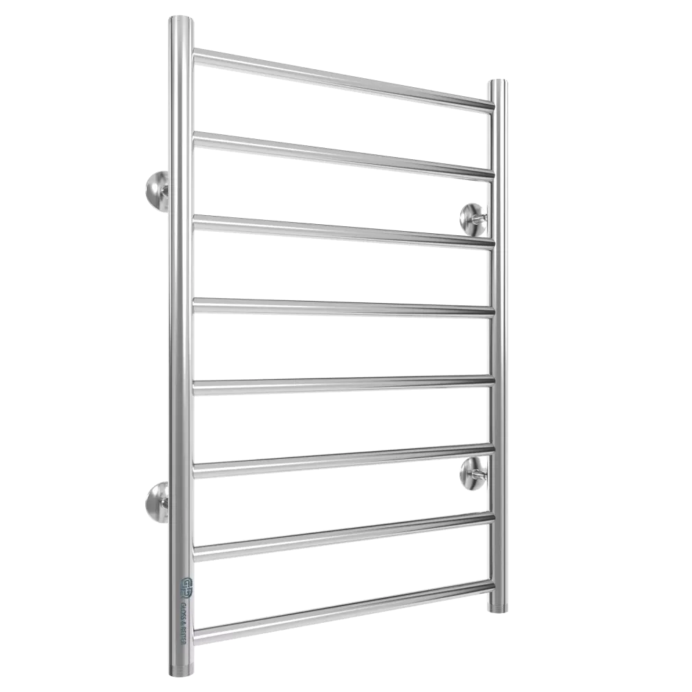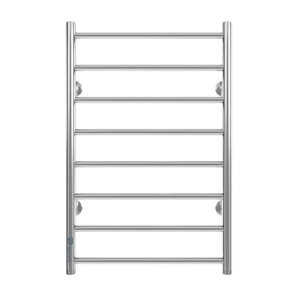 Тип: водяной , Форма: лесенка , Материал: нержавеющая сталь , Подключение: нижнее , Посадочное (межосевое) расстояние: 500 мм, Посадочный диаметр: 1 ", Высота: 80 см, Ширина: 50 см, Цвет: хром , Количество ребер: 8 шт.