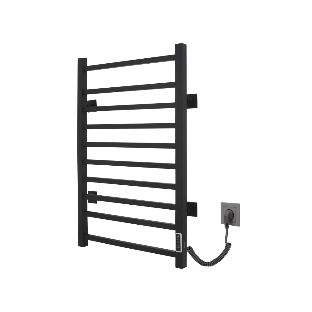 Тип: электрический , Форма: лесенка , Материал: нержавеющая сталь , Подключение: боковое , Высота: 80 см, Ширина: 50 см, Цвет: черный , Количество ребер: 10 шт.