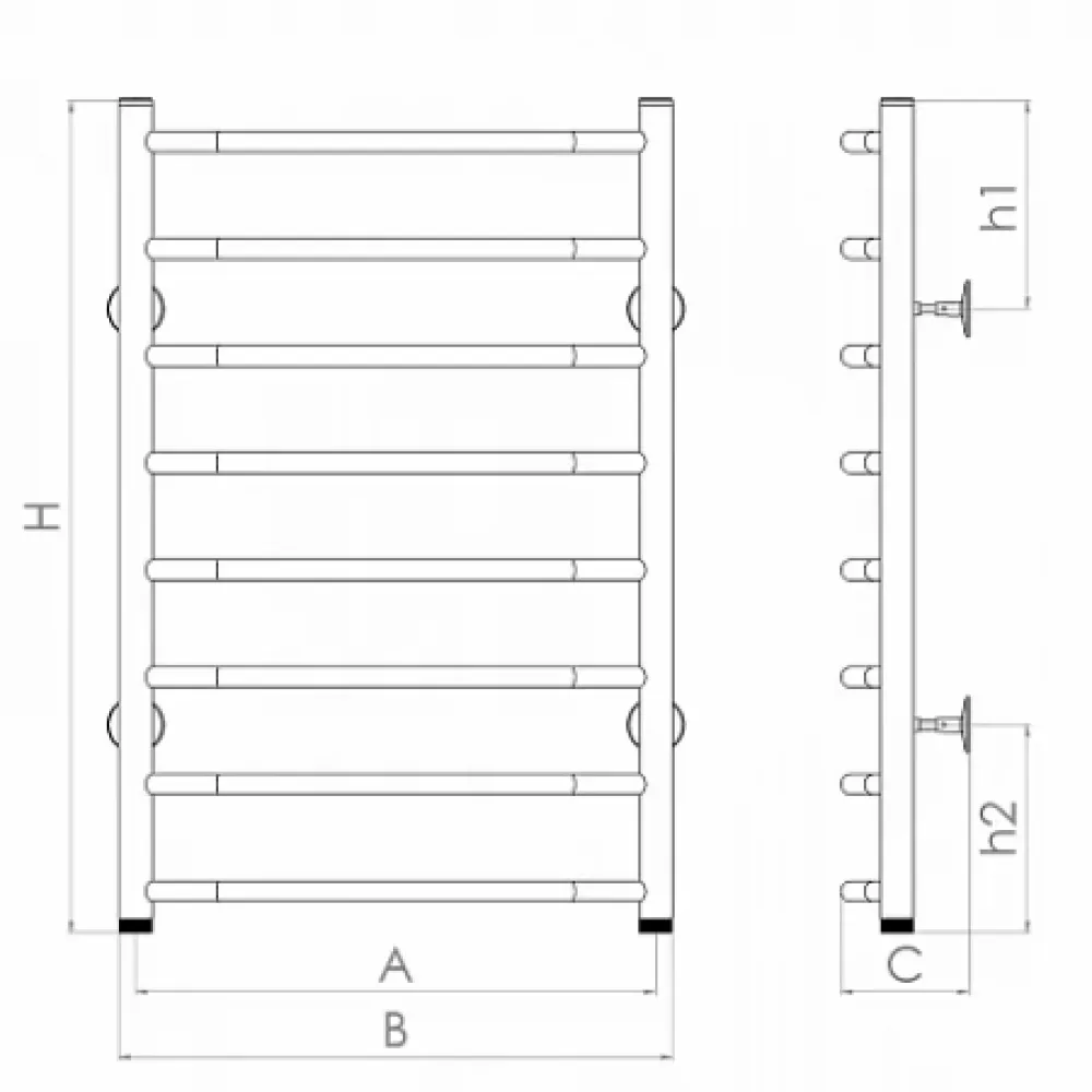 Тип: водяной , Форма: лесенка , Материал: нержавеющая сталь , Подключение: нижнее , Посадочное (межосевое) расстояние: 600 мм, Посадочный диаметр: 1 ", Высота: 80 см, Ширина: 60 см, Цвет: хром