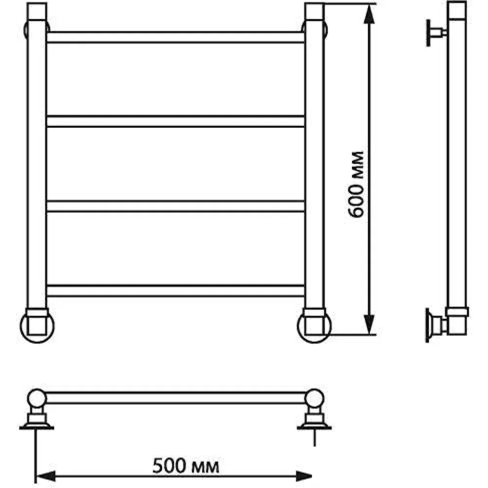 водяной, "лесенка", нержавеющая сталь, подключение нижнее (500 мм, 1"), 100x50 см
