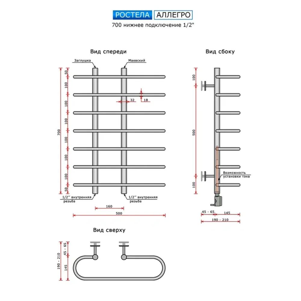 Полотенцесушитель водяной Ростела Аллегро 700 1/2" резьба