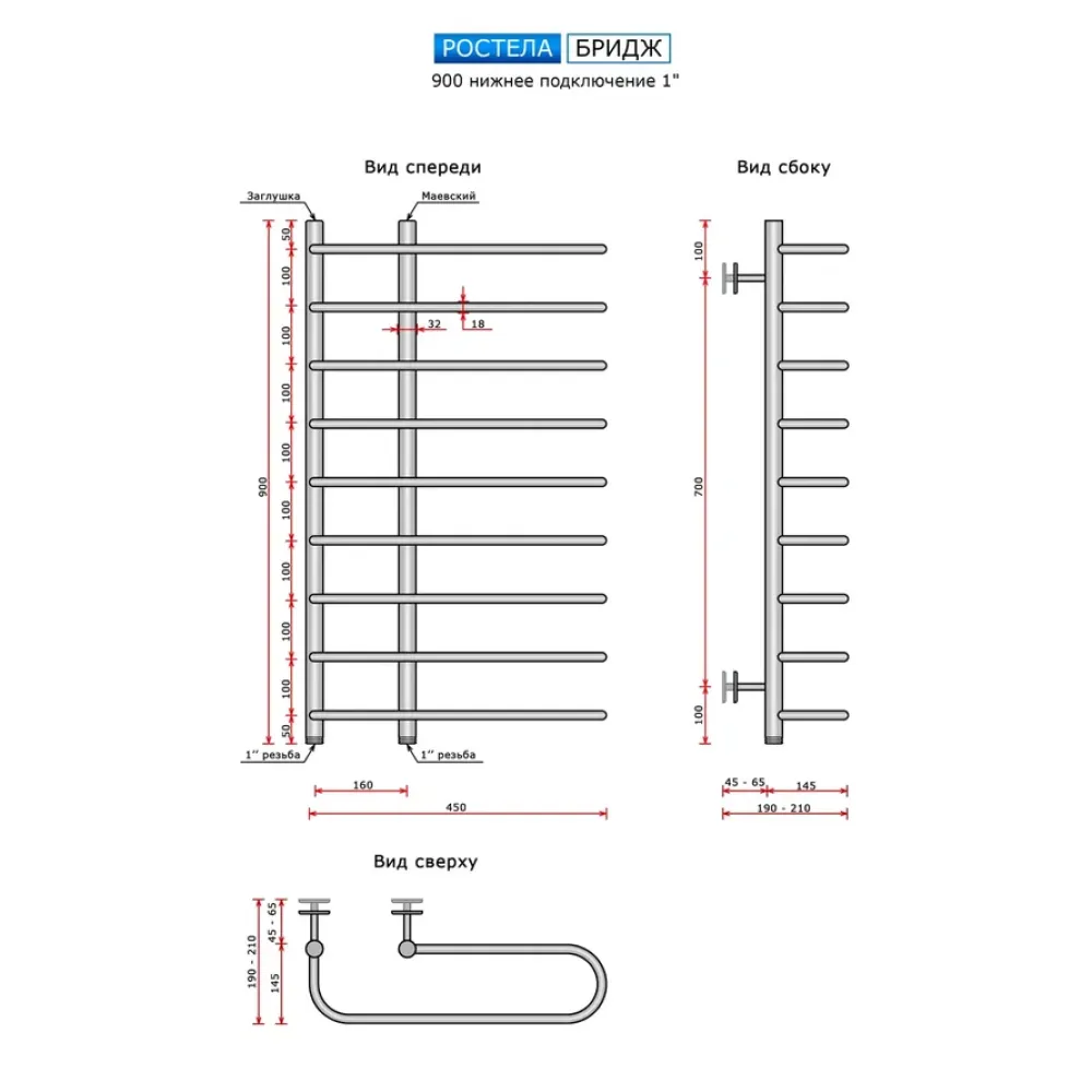 Полотенцесушитель водяной Ростела Бридж 450x900 1" резьба