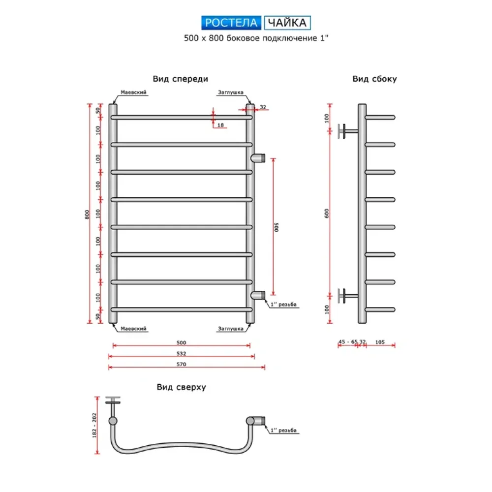 Полотенцесушитель водяной Ростела Чайка 500x800/8 1" боковое подключение