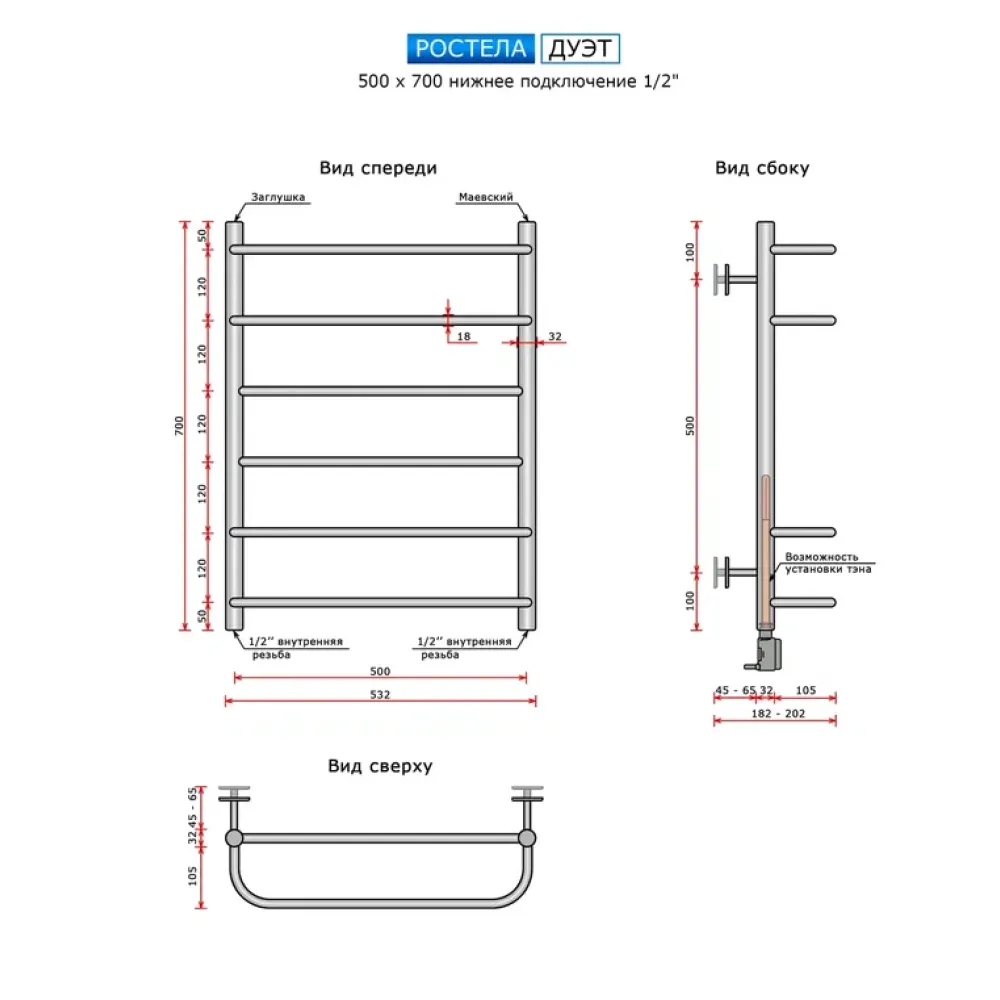 Полезная информация по установке полотенцесушителя При установке полотенцесушителя могут понадобиться дополнительные материалы: "Американки" - угловые или прямые Вентили - угловые или прямые Переходники - ½" или ¾" Тройники, уголки, эксцентрики, чашки Все необходимые дополнительные материалы есть в нашем ассортименте. Менеджер подробно проконсультирует и предложит оптимальный вариант под вашу модель. Позвонить Официальная гарантия на полотенцесушители Ростела - 5 лет