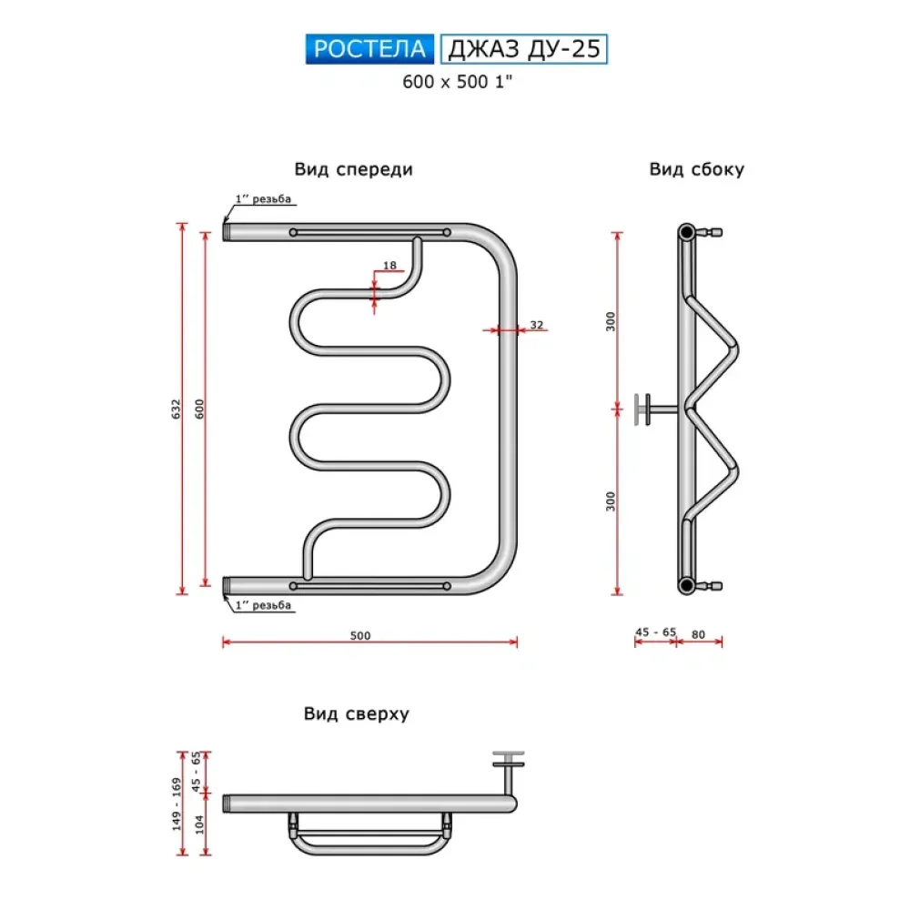 Полотенцесушитель водяной Ростела Джаз ДУ-25 600x500