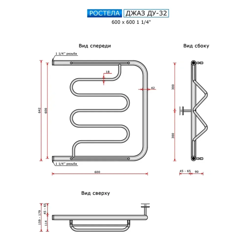 Полотенцесушитель водяной Ростела Джаз ДУ-32 600x600