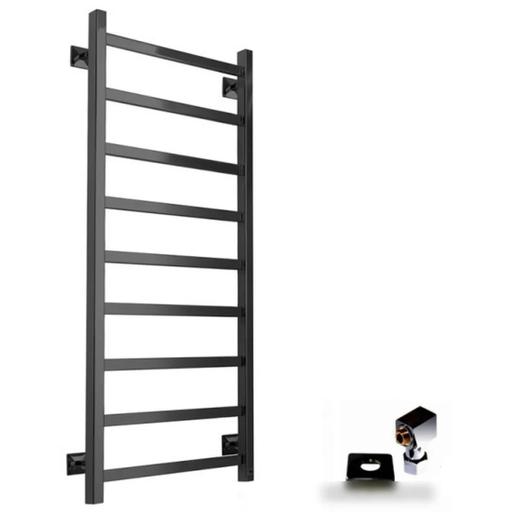 водяной, "лесенка", нержавеющая сталь, подключение нижнее (400 мм, 1/2"), 100x40 см, цвет: черный