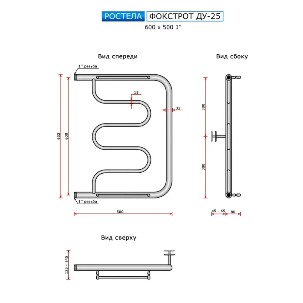 Полотенцесушитель водяной Ростела Фокстрот 600x500 ДУ-25