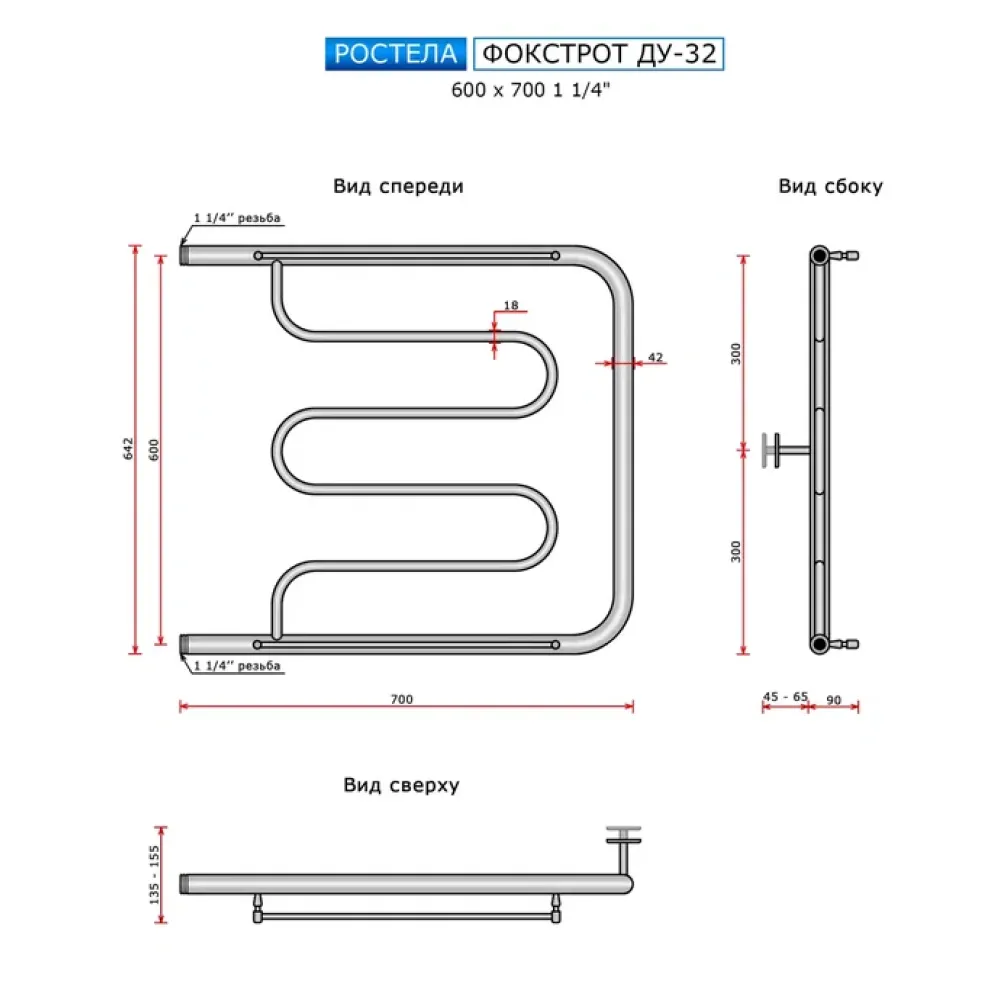 Тип: водяной , Форма: лира , Материал: нержавеющая сталь , Подключение: боковое , Посадочное (межосевое) расстояние: 600 мм, Посадочный диаметр: 1 1/4 ", Высота: 70 см, Ширина: 60 см, Цвет: полированная сталь