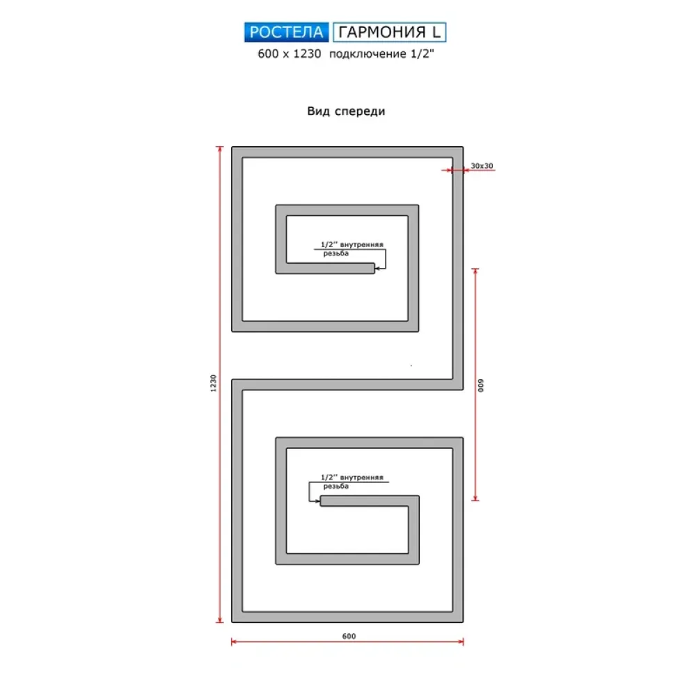 Тип: водяной , Форма: змейка , Материал: нержавеющая сталь , Посадочный диаметр: 1/2 ", Высота: 87 см, Ширина: 123 см, Цвет: полированная сталь