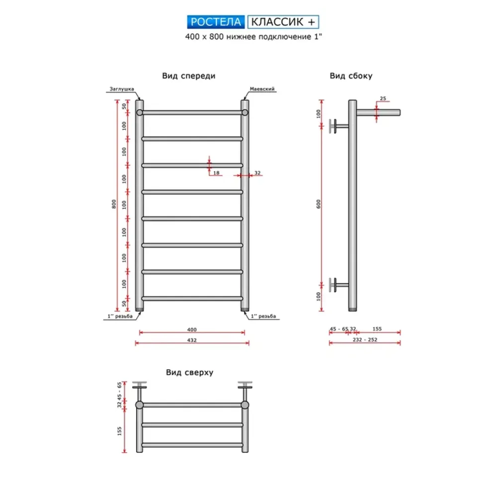 Тип: водяной , Форма: лесенка , Материал: нержавеющая сталь , Подключение: нижнее , Посадочное (межосевое) расстояние: 400 мм, Посадочный диаметр: 1 ", Высота: 80 см, Ширина: 40 см, Цвет: полированная сталь