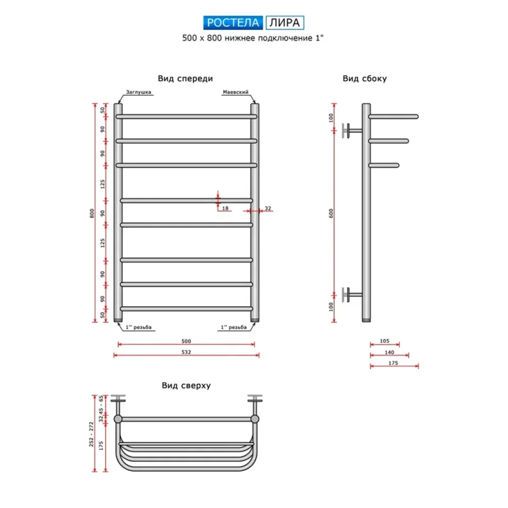 Тип: водяной , Форма: лесенка , Материал: нержавеющая сталь , Подключение: нижнее , Посадочное (межосевое) расстояние: 500 мм, Посадочный диаметр: 1 ", Высота: 80 см, Ширина: 50 см, Цвет: хром