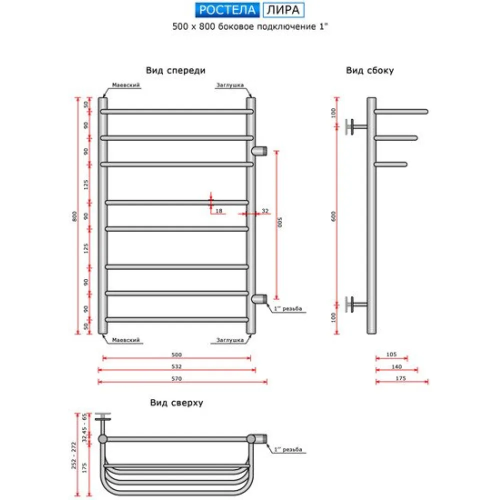 Полотенцесушитель Ростела Лира боковое правое подключение 1" 50x80 см
