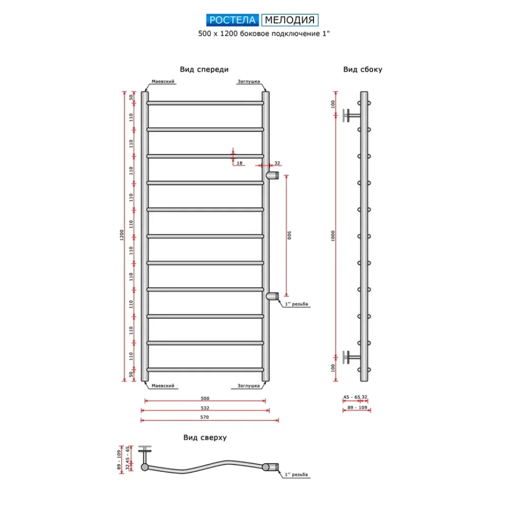 Тип: водяной , Форма: лесенка , Материал: нержавеющая сталь , Подключение: боковое , Посадочное (межосевое) расстояние: 500 мм, Посадочный диаметр: 1 ", Высота: 60 см, Ширина: 50 см, Цвет: полированная сталь