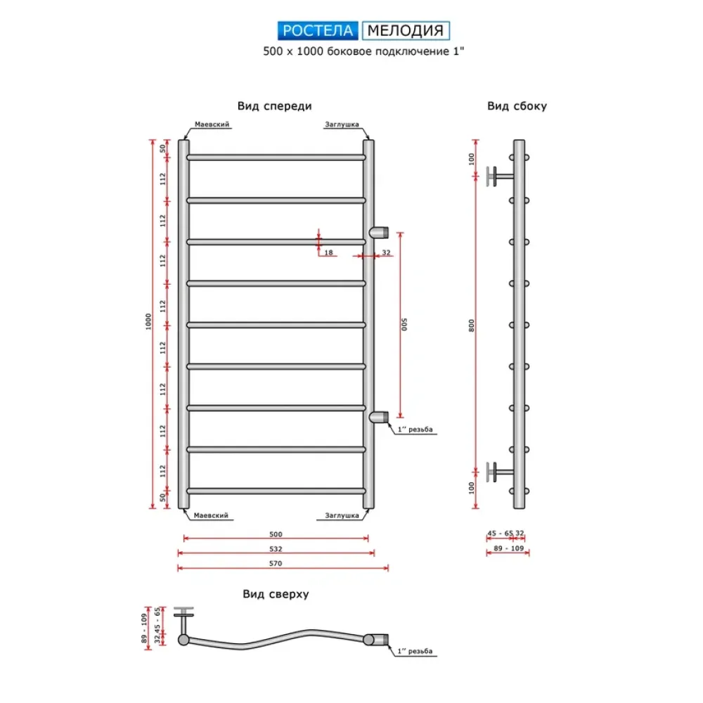 Тип: водяной , Форма: лесенка , Материал: нержавеющая сталь , Подключение: боковое , Посадочное (межосевое) расстояние: 500 мм, Посадочный диаметр: 1 ", Высота: 60 см, Ширина: 50 см, Цвет: полированная сталь