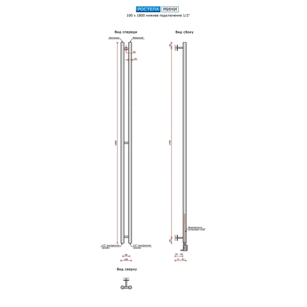 Полотенцесушитель водяной Ростела Мини 1800/2 1/2" хром