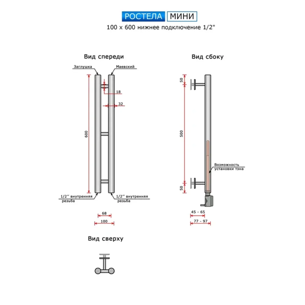 Полотенцесушитель водяной Ростела Мини 600/2 1/2" хром