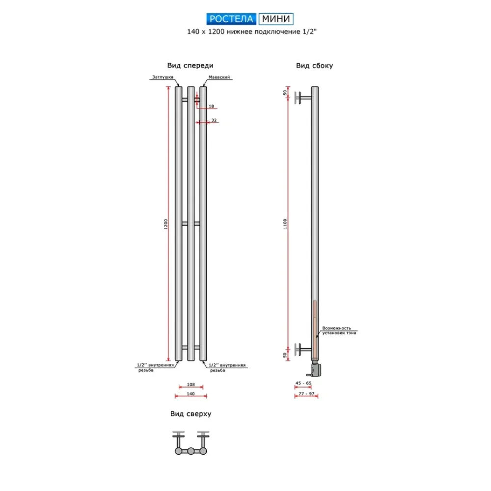 Полотенцесушитель водяной Ростела Мини 1200/3 1/2" хром