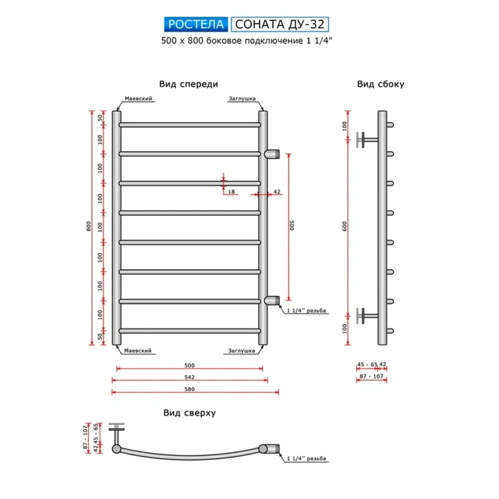 Полотенцесушитель водяной Ростела Соната 500x800/8 1.1/4" боковое подключение