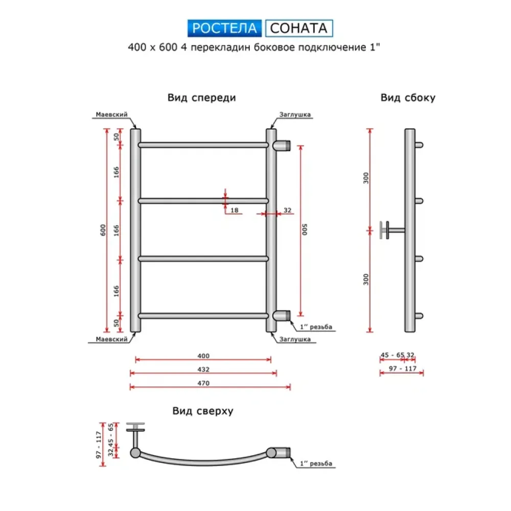 Полотенцесушитель водяной Ростела Соната 400x600/4 1" боковое подключение