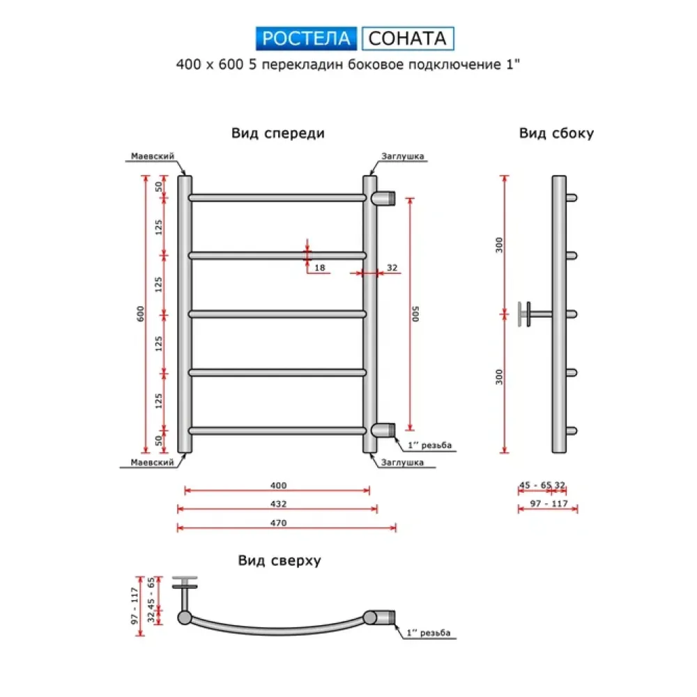 Тип: водяной , Форма: лесенка , Материал: нержавеющая сталь , Подключение: боковое , Посадочное (межосевое) расстояние: 500 мм, Посадочный диаметр: 1 ", Высота: 60 см, Ширина: 40 см, Цвет: полированная сталь