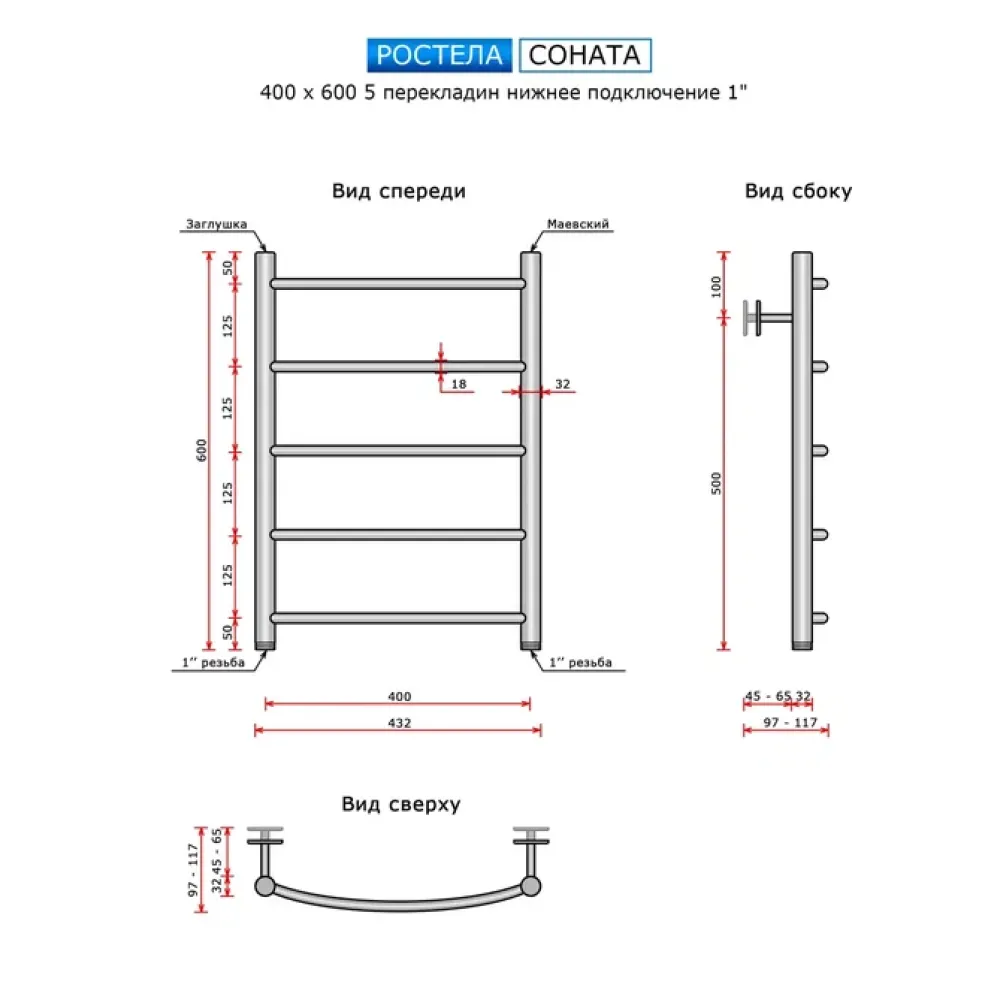 Тип: водяной , Форма: лесенка , Материал: нержавеющая сталь , Подключение: нижнее , Посадочное (межосевое) расстояние: 400 мм, Посадочный диаметр: 1 ", Высота: 60 см, Ширина: 40 см, Цвет: полированная сталь