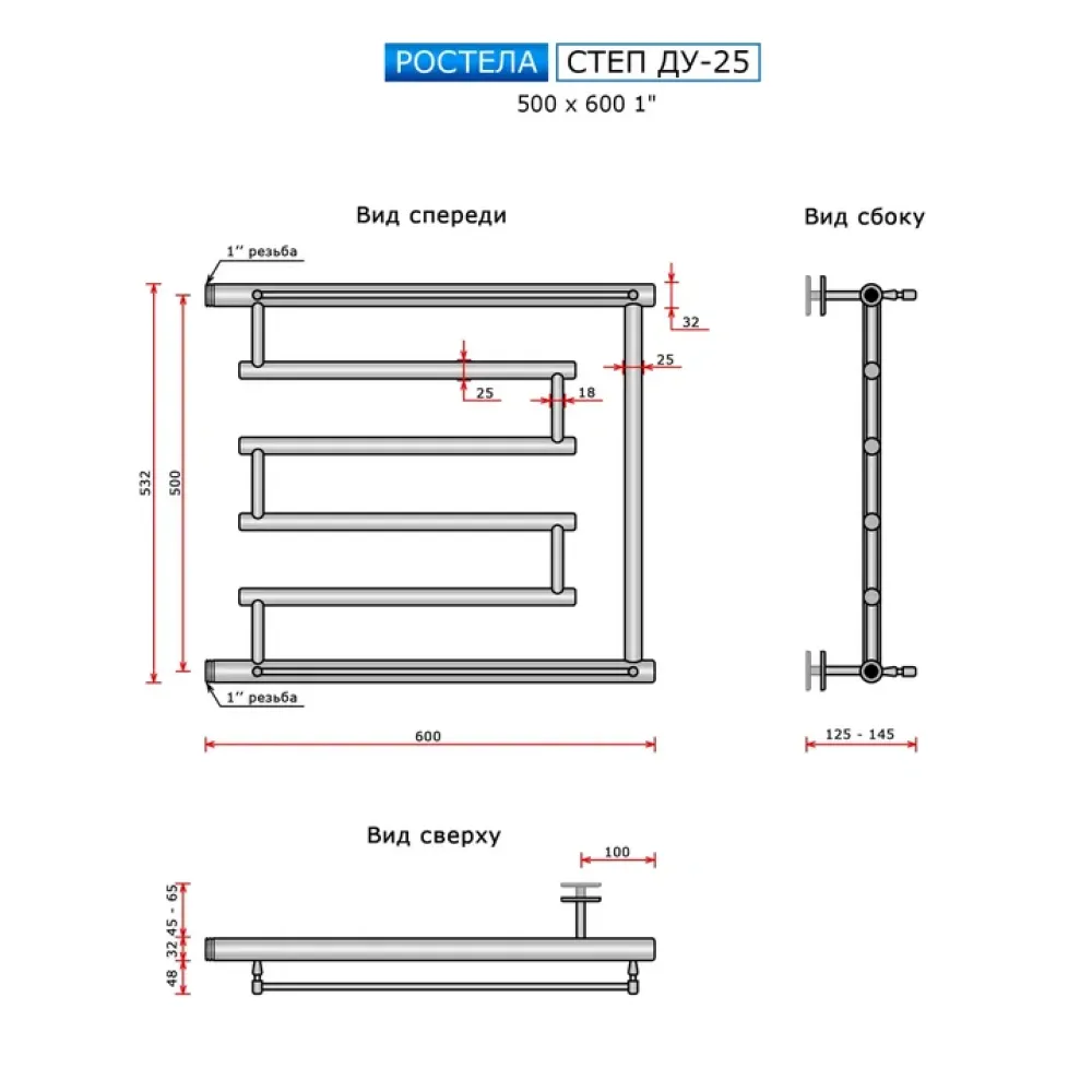 Полотенцесушитель водяной Ростела Степ 500x600 ДУ-25