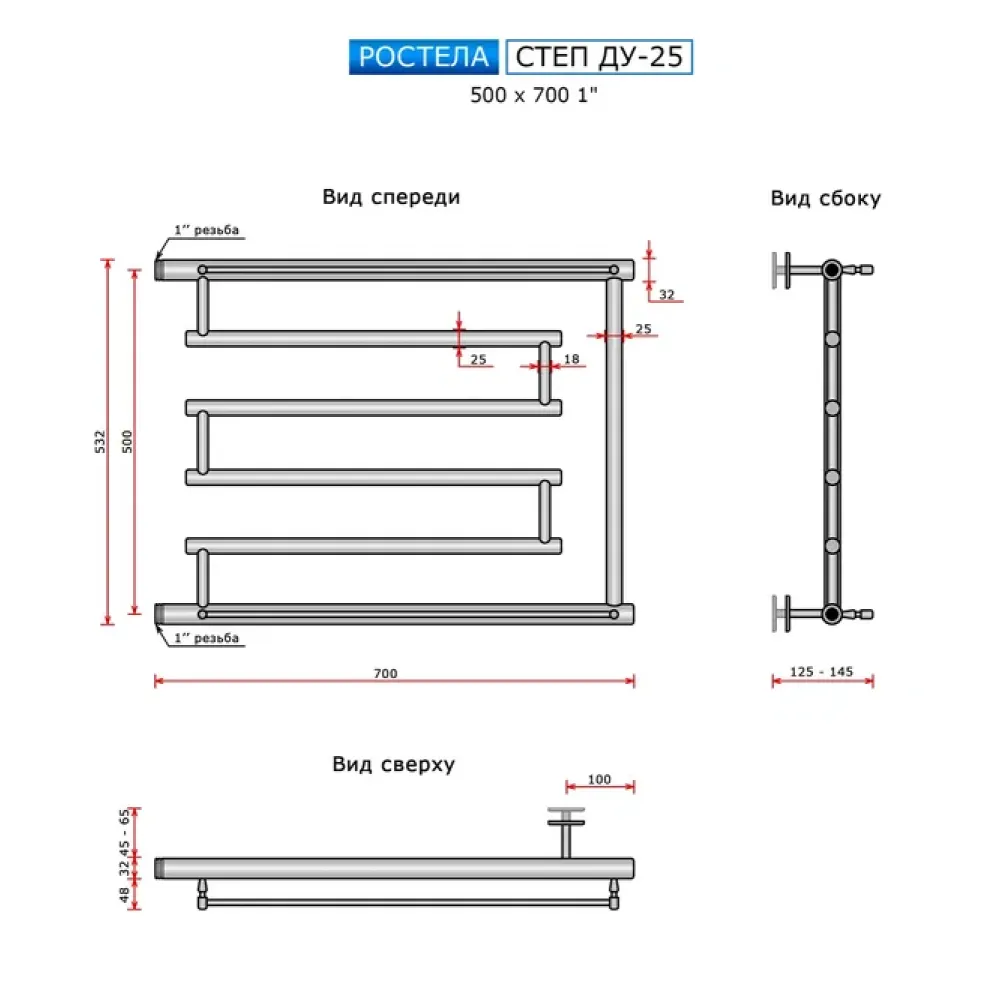 Полотенцесушитель водяной Ростела Степ 500x700 ДУ-25