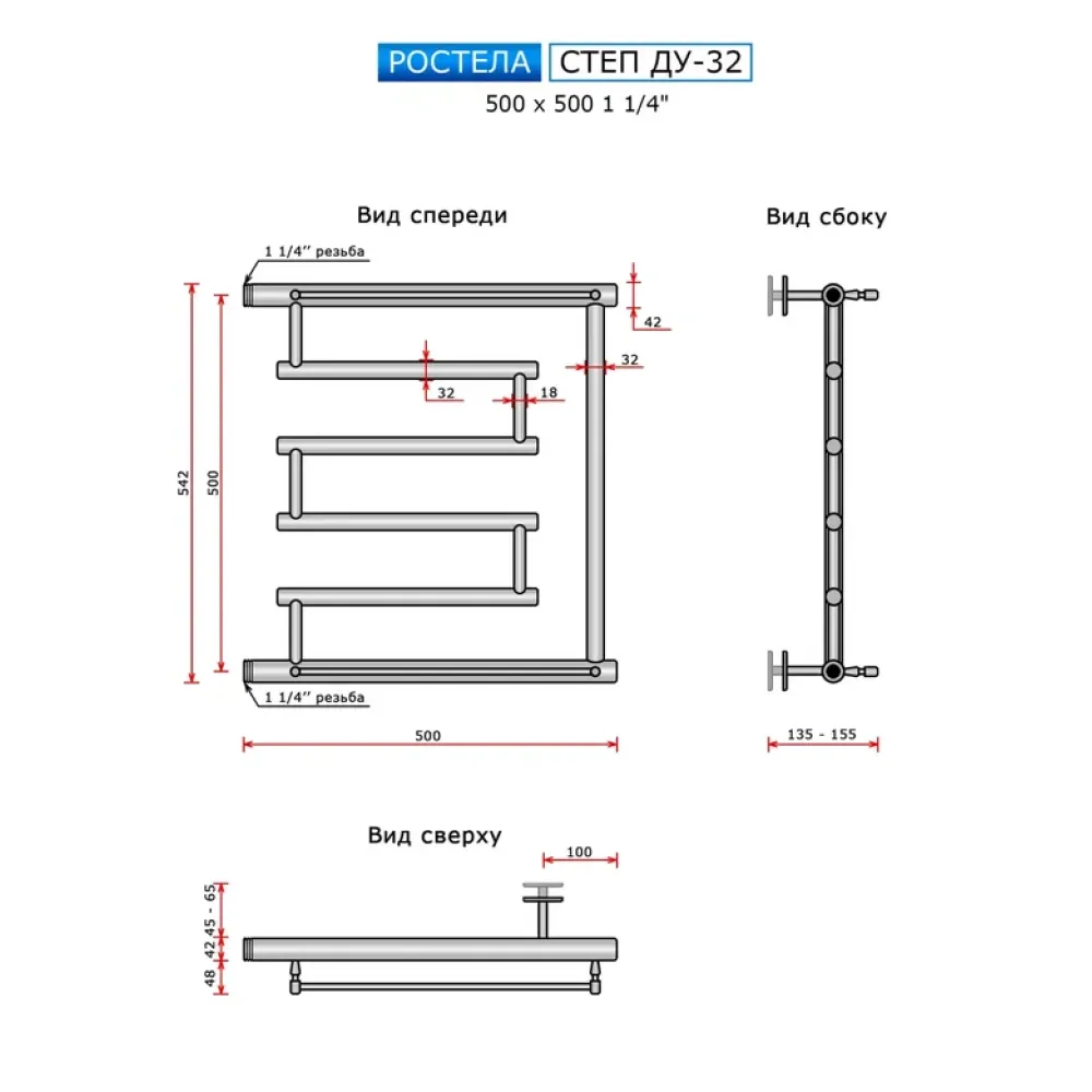 Полотенцесушитель водяной Ростела Степ 500x500 ДУ-32