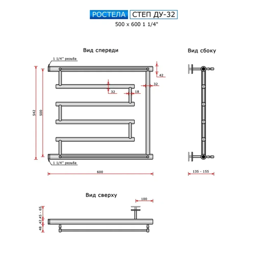 Полотенцесушитель водяной Ростела Степ 500x600 ДУ-32