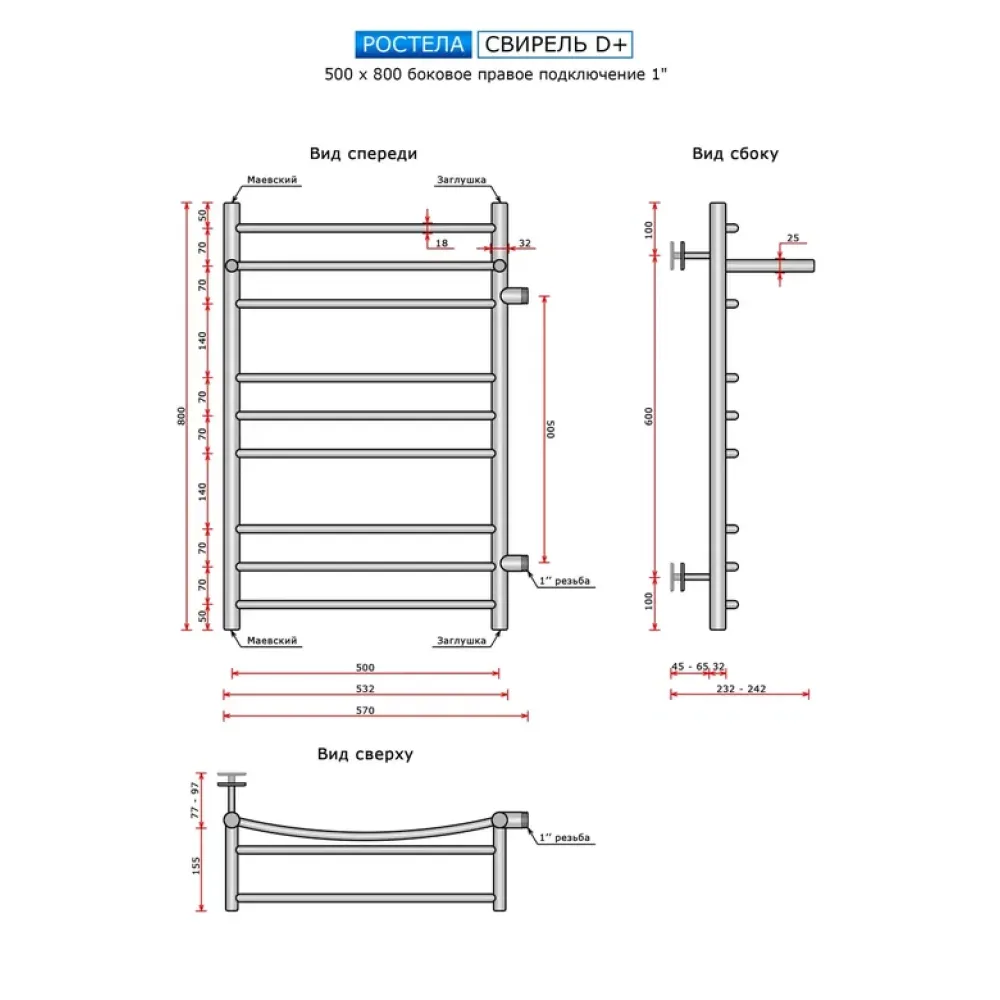 | Информация | Полотенцесушитель Ростела Свирель D+ с боковым правым подключением 1" и размером 50x80 см. Идеально подходит для квартир с действующим выходом 500мм. Полотенцесушитель с полочкой и поперечными дугообразными перекладинами. |