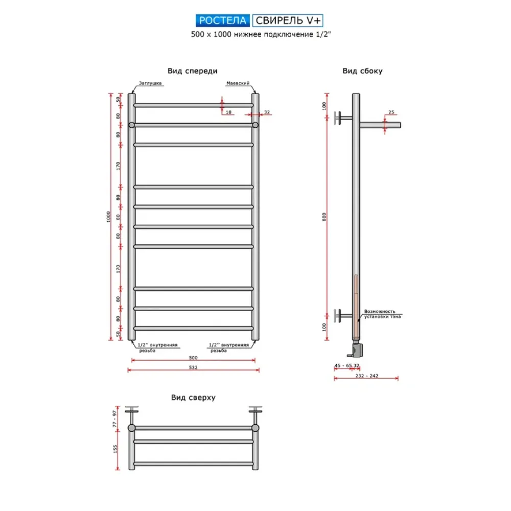 Полезная информация по установке полотенцесушителя При установке полотенцесушителя могут понадобиться дополнительные материалы: "Американки" - угловые или прямые Вентили - угловые или прямые Переходники - ½" или ¾" Тройники, уголки, эксцентрики, чашки Все необходимые дополнительные материалы есть в нашем ассортименте. Менеджер подробно проконсультирует и предложит оптимальный вариант под вашу модель. Позвонить Официальная гарантия на полотенцесушители Ростела - 5 лет