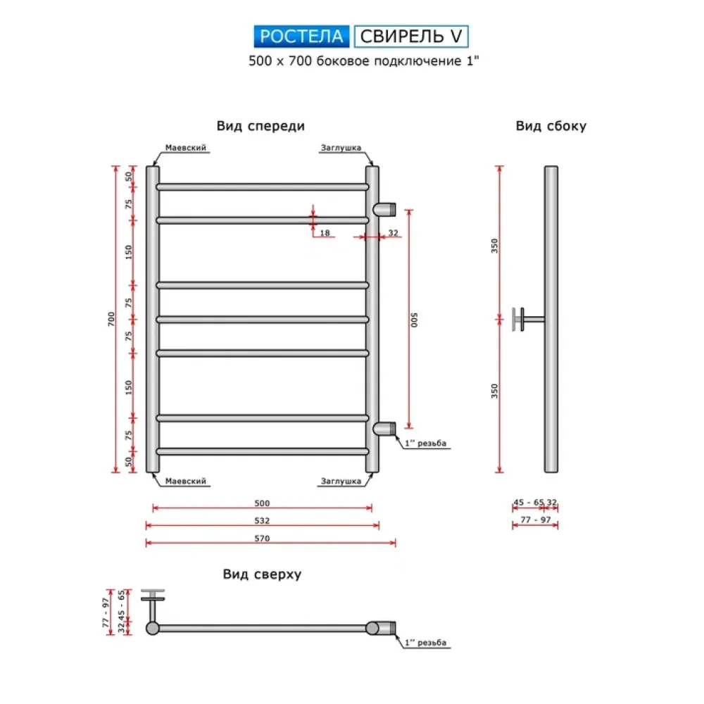 | Комплектация | крепления к стене (при высоте 70 см – 1 шт, от 80 см и выше – 2 шт), кран Маевского (1 шт), паспорт (гарантийный талон) |