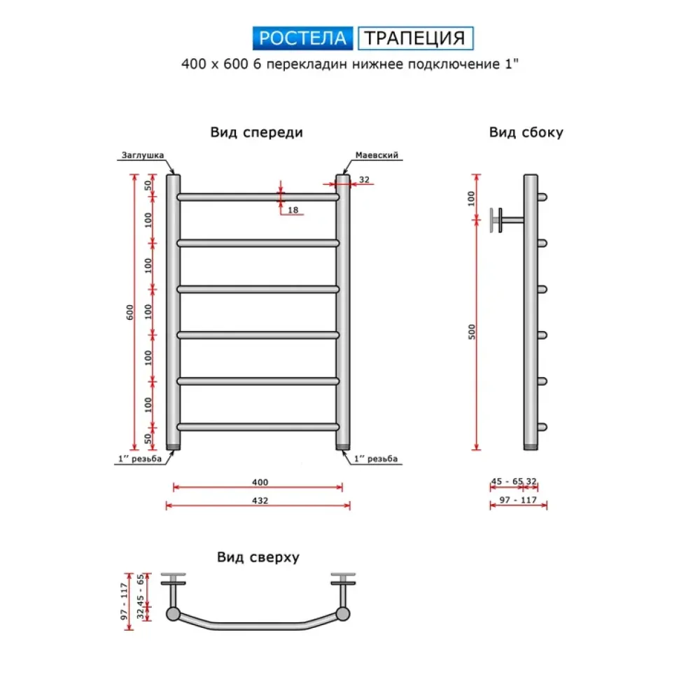 Тип: водяной , Форма: лесенка , Материал: нержавеющая сталь , Подключение: нижнее , Посадочное (межосевое) расстояние: 400 мм, Посадочный диаметр: 1 ", Высота: 60 см, Ширина: 40 см, Цвет: полированная сталь