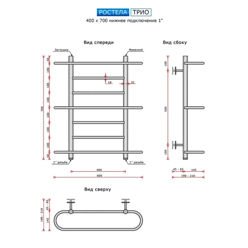 Тип: водяной , Форма: лесенка , Материал: нержавеющая сталь , Подключение: нижнее , Посадочное (межосевое) расстояние: 400 мм, Посадочный диаметр: 1 ", Высота: 70 см, Ширина: 60 см, Цвет: полированная сталь