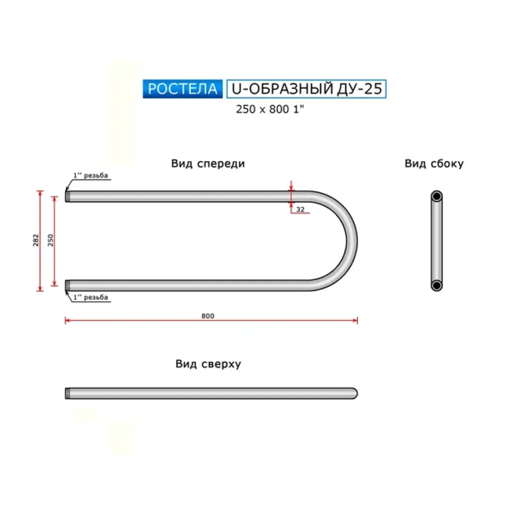 Полотенцесушитель водяной Ростела U-образный ДУ-25 250x800