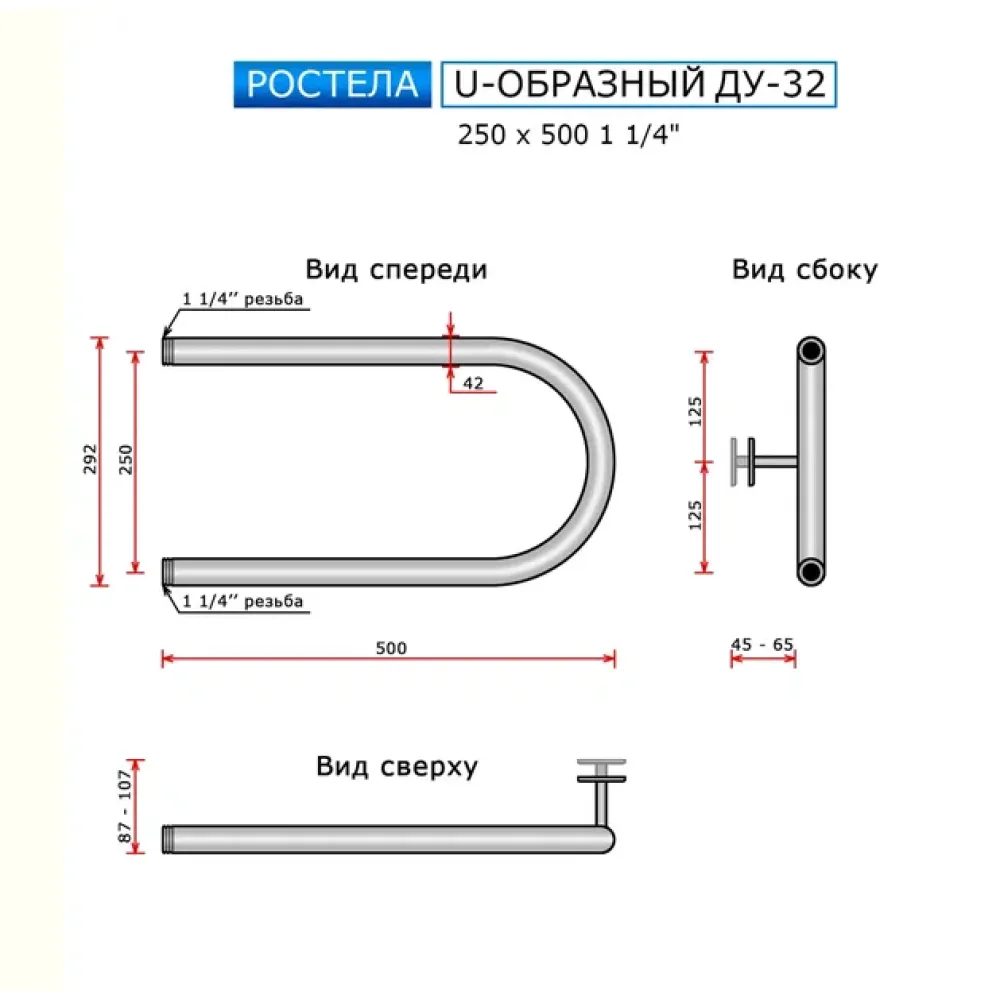 Полотенцесушитель водяной Ростела U-образный ДУ-32 250x500