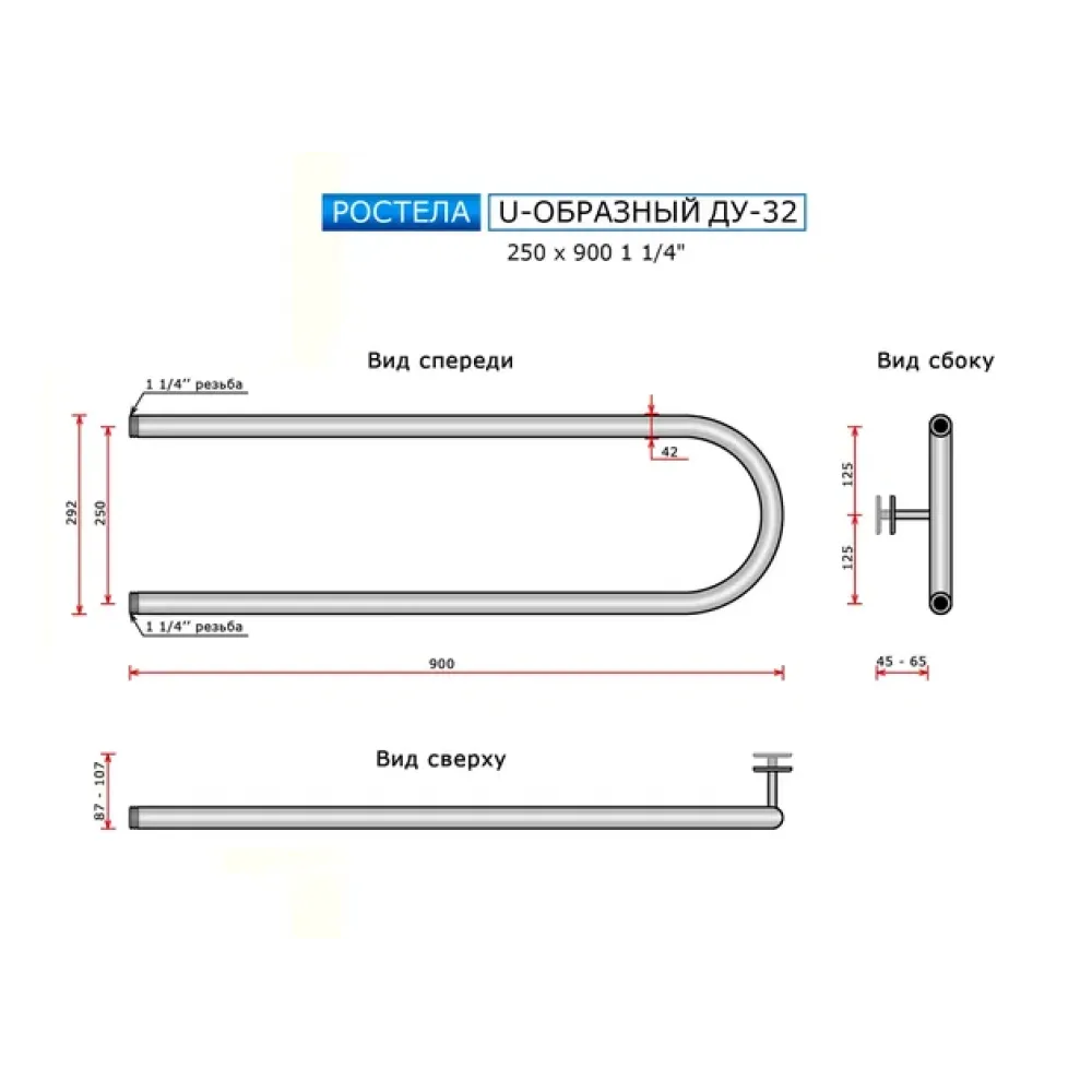 Тип: водяной , Форма: П-образный , Материал: нержавеющая сталь , Подключение: боковое , Посадочное (межосевое) расстояние: 250 мм, Посадочный диаметр: 1 1/4 ", Высота: 25 см, Ширина: 90 см, Цвет: полированная сталь