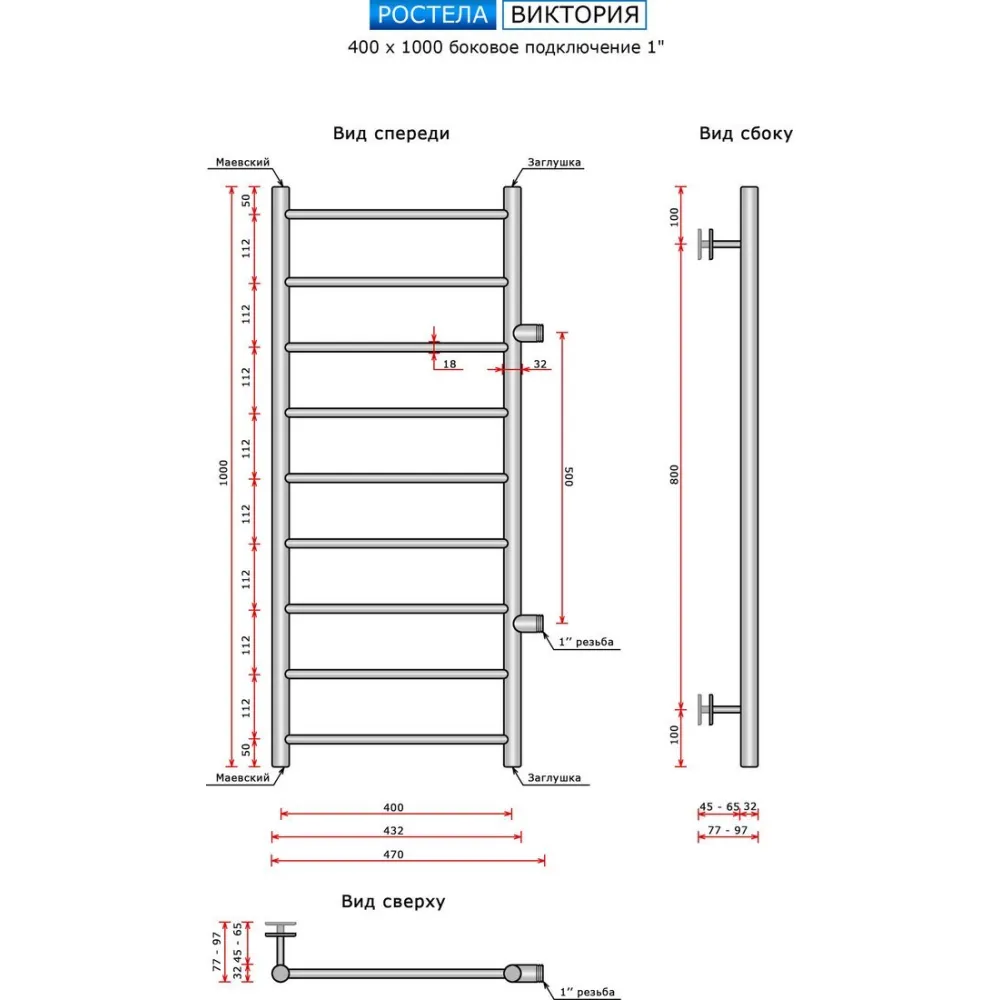 Полотенцесушитель водяной Ростела Виктория 400x1000/9 1" боковое подключение