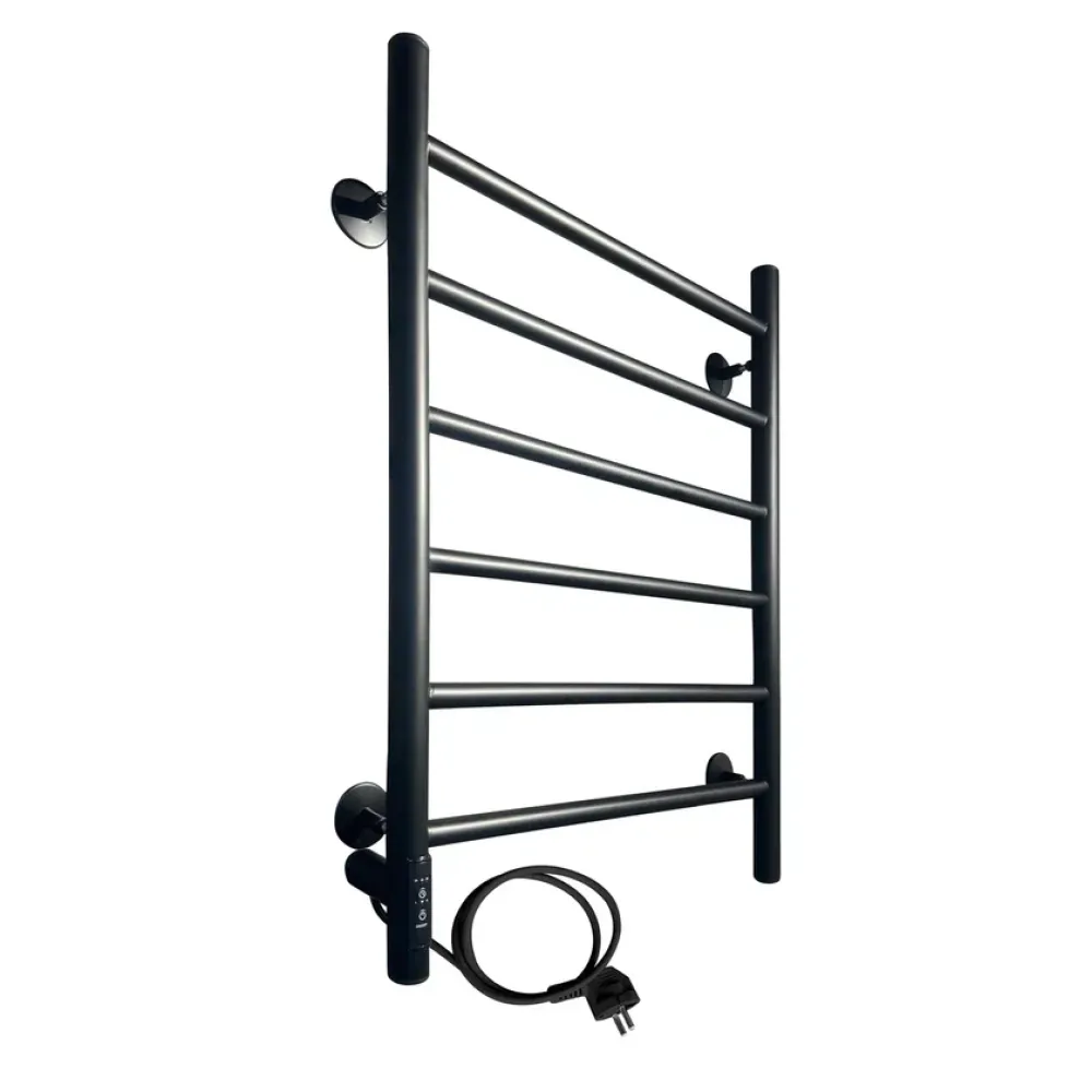 Тип: электрический , Форма: лесенка , Материал: нержавеющая сталь , Высота: 70 см, Ширина: 50 см, Цвет: черный , Количество ребер: 6 шт.