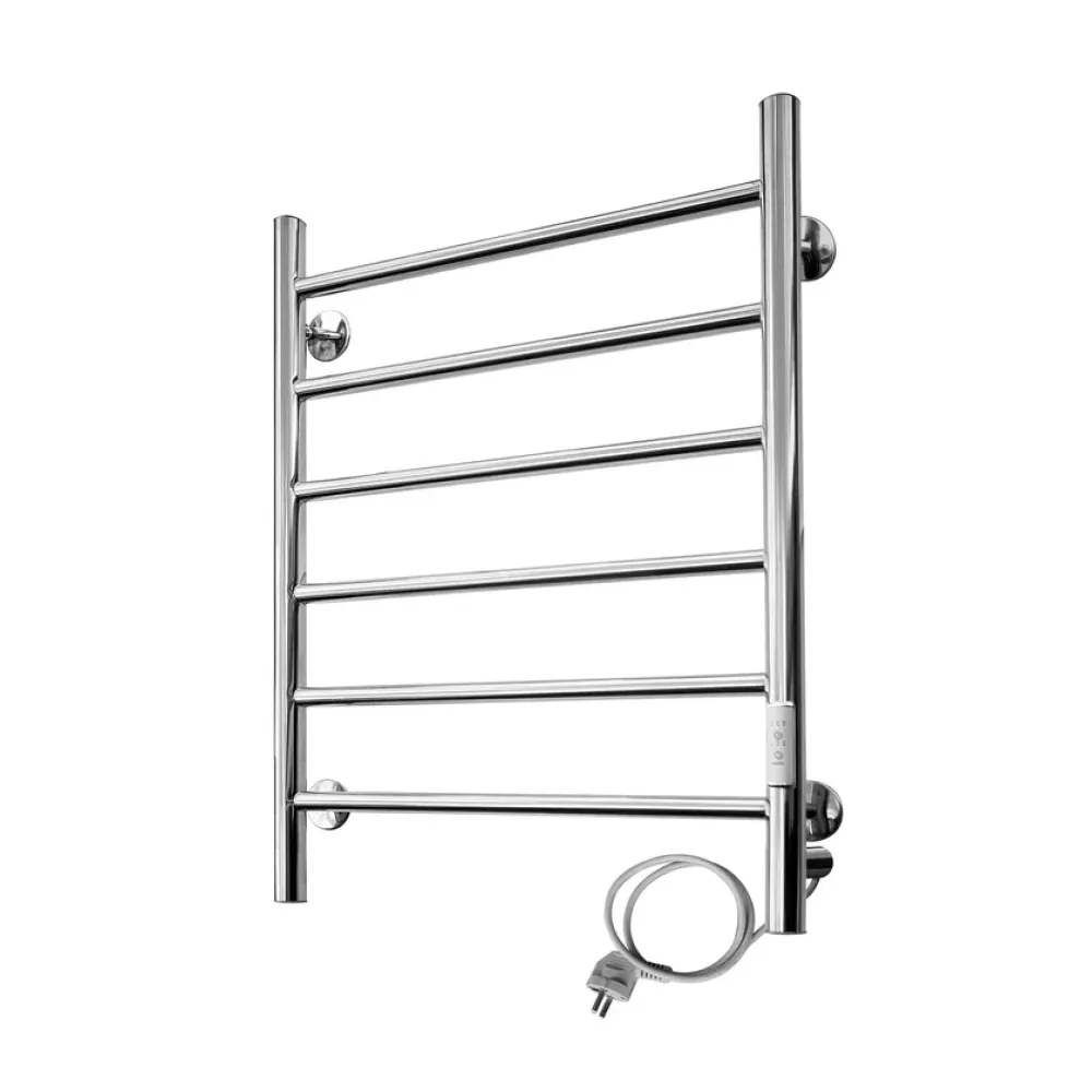 Тип: электрический , Форма: лесенка , Материал: нержавеющая сталь , Высота: 70 см, Ширина: 50 см, Цвет: хром , Количество ребер: 6 шт., Ребра: прямые