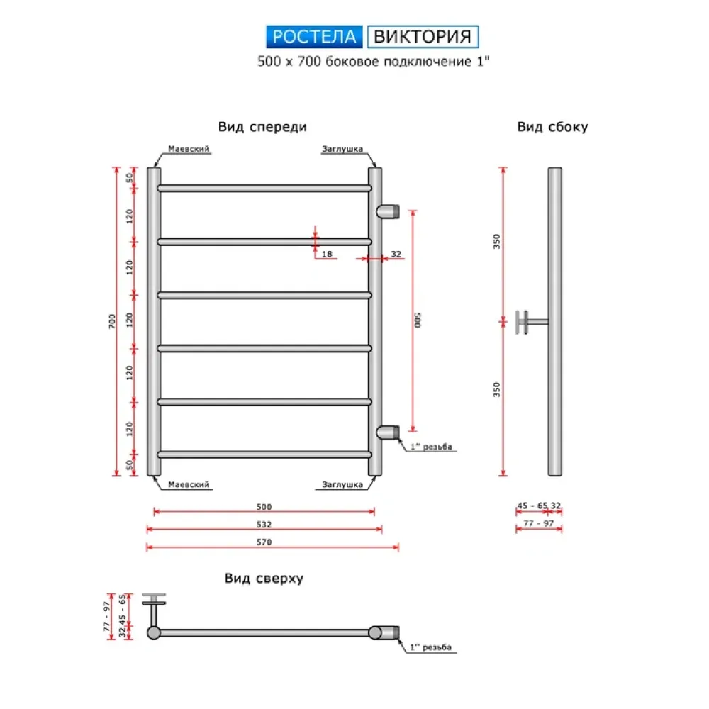 Тип: водяной , Форма: лесенка , Материал: нержавеющая сталь , Подключение: боковое , Посадочное (межосевое) расстояние: 500 мм, Посадочный диаметр: 1 ", Высота: 70 см, Ширина: 50 см, Цвет: полированная сталь