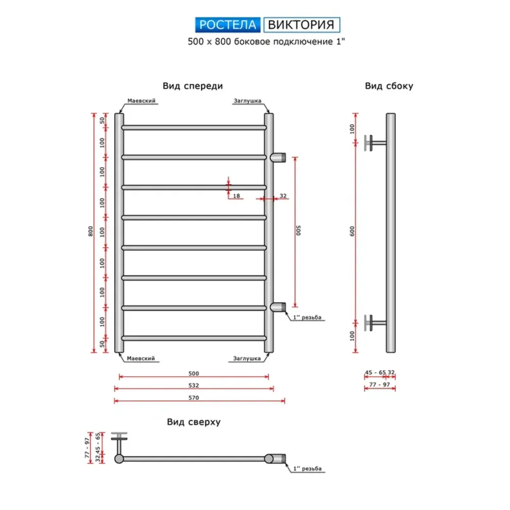 Тип: водяной , Форма: лесенка , Материал: нержавеющая сталь , Подключение: боковое , Посадочное (межосевое) расстояние: 500 мм, Посадочный диаметр: 1 ", Высота: 80 см, Ширина: 50 см, Цвет: полированная сталь