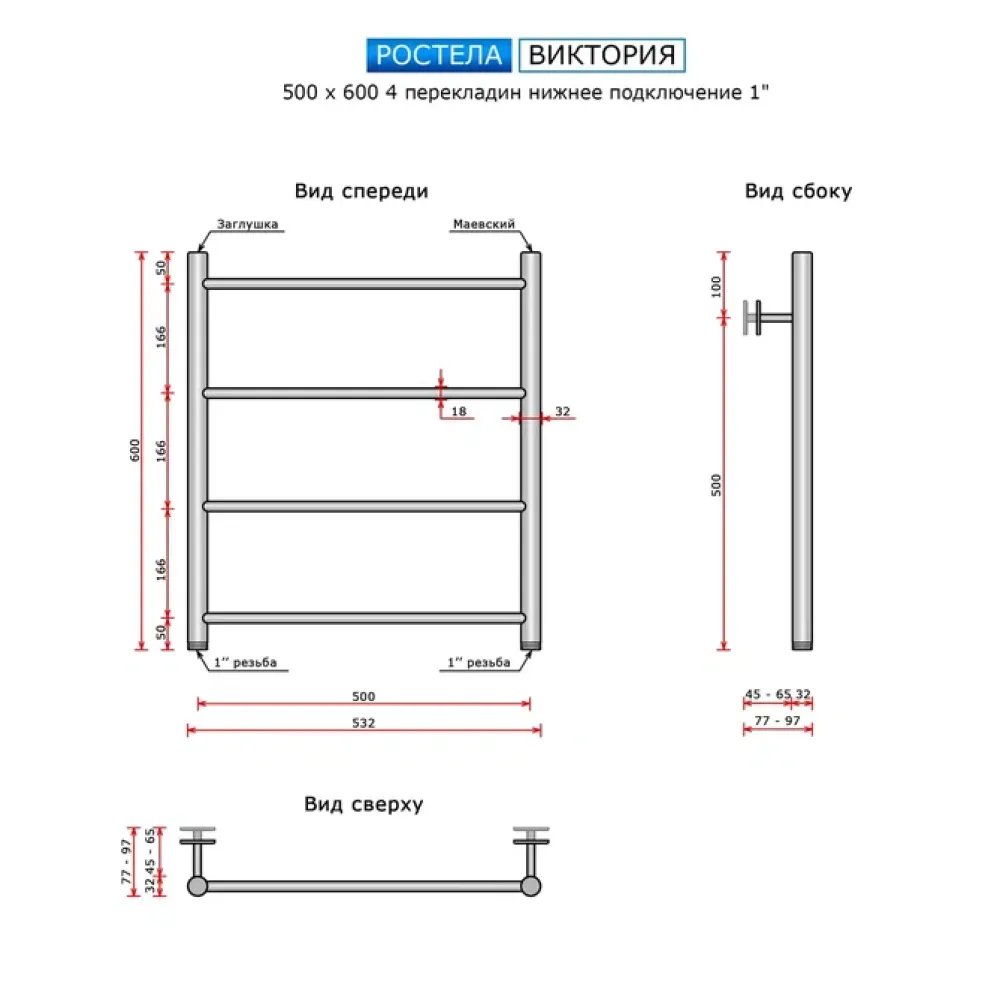 Тип: водяной , Форма: лесенка , Материал: нержавеющая сталь , Подключение: нижнее , Посадочное (межосевое) расстояние: 500 мм, Посадочный диаметр: 1 ", Высота: 60 см, Ширина: 50 см, Цвет: полированная сталь